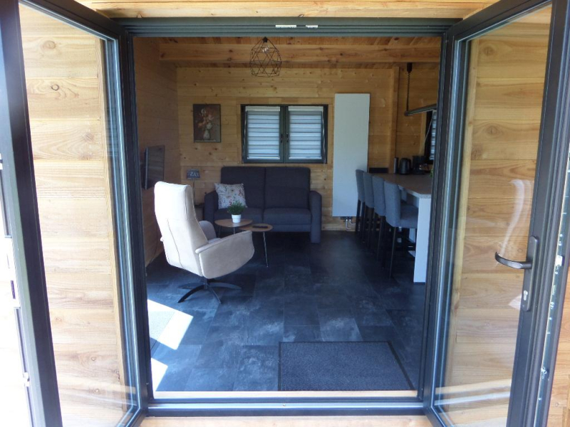 Prachtige blokhut, volledig uit Douglas opgetrokken, volledig geisoleerd en HR+ glas.