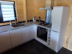 De berging heeft een afmeting van 2x3 meter met een overstek van 1 meter, is volledig geisoleerd en voorzien van elektra, water en afvoer.
